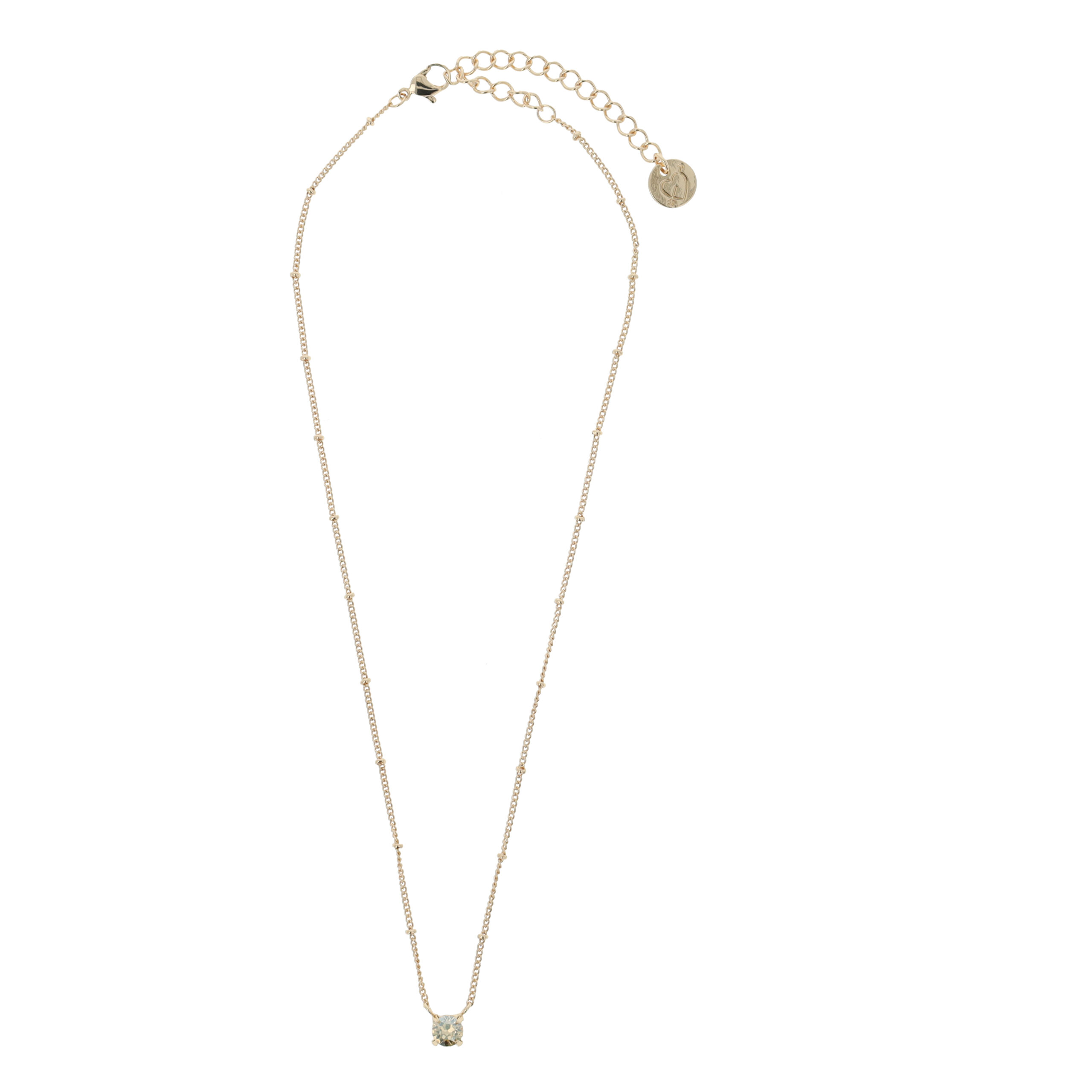 en is een tijdloze aanvulling op je sieradencollectie. De gouden ketting is bezet met een Golden Shadow kristal van Swarovski en afgewerkt met een 14-karaats gouden plating.Handgemaakt in Europa, met liefde. |